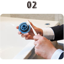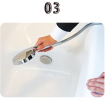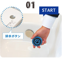 シャワーをかけながら排水ボタンを10回程度押し、排水口内部の汚れを流します。