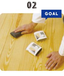 頑固なシミの場合は、OSMOワックス&クリーナーを乾いた布で薄く塗り伸ばす。