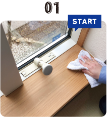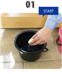 (01)に浸した雑巾を固く絞って汚れを拭き取ります。
