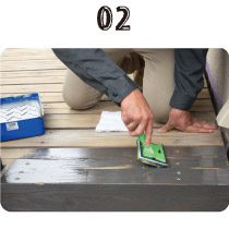 - ジェルが乾いてしまうと、古い木の表皮や汚れが落ちにくくなりますので、少しずつ濡らして、塗って、洗ってを繰り返すことがキレイにするポイントです。